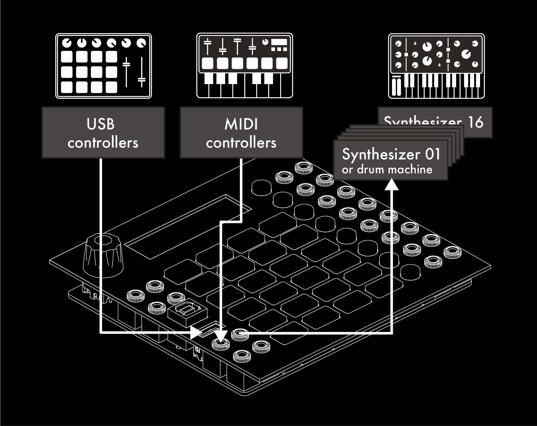 16–track MIDI polyphonic sequencerRecord notes and CCs from the midi inputs, play your synthesizers and drum machines, synchronize everything with its MIDI clock, control any effect parameters with an external controller...