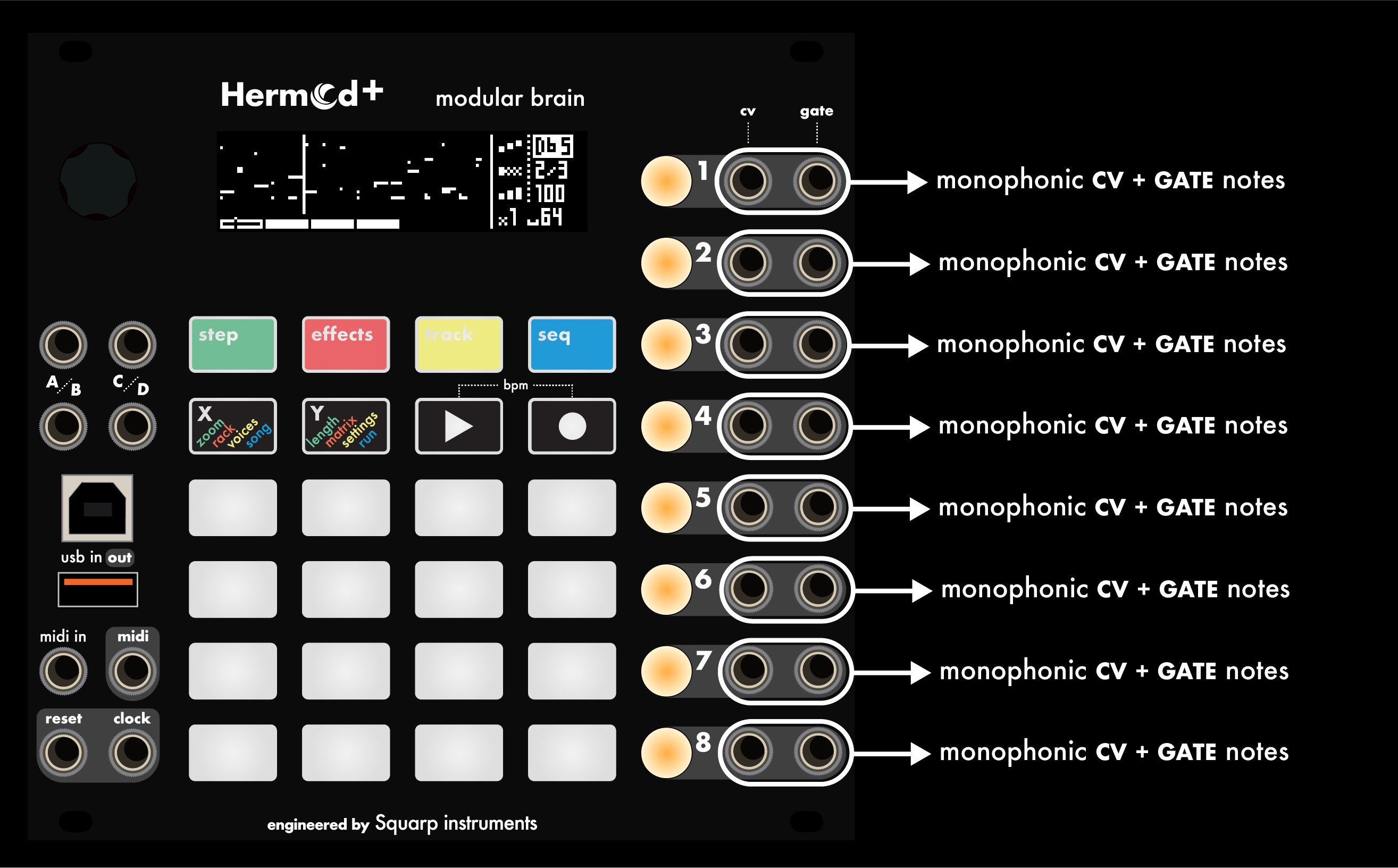 Hermod+ offers 8 CV/Gate tracks (that can also output midi) and adds 8 dedicated MIDI tracks for your extra gear.