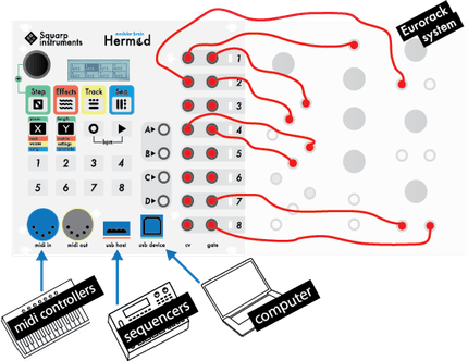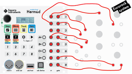 You can even use multiple Hermods as MIDI/USB to CV interfaces for your computer or your tabletop sequencer: