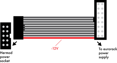 Note: Hermod requires a ±12V eurorack supply, and consume 310mA from the +12V rail and 30mA from the -12V rail. If Hermod powers an USB midi device from its USB HOST port, add up to 500mA from the +12V rail.