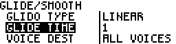 Only if the track is polyphonic (multiple voices). ALL VOICES will apply the glide on each voices. VOICE 1 will apply the glide only on voice 1, VOICE 2 will apply the glide only on voice 2, ...