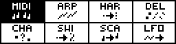 Finally, every effect parameter can be edited in real-time via CC message and CV inputs, thanks to the modMatrix. Press Y in EFFECTS mode to access the modMatrix, press X to go back to effects mode.