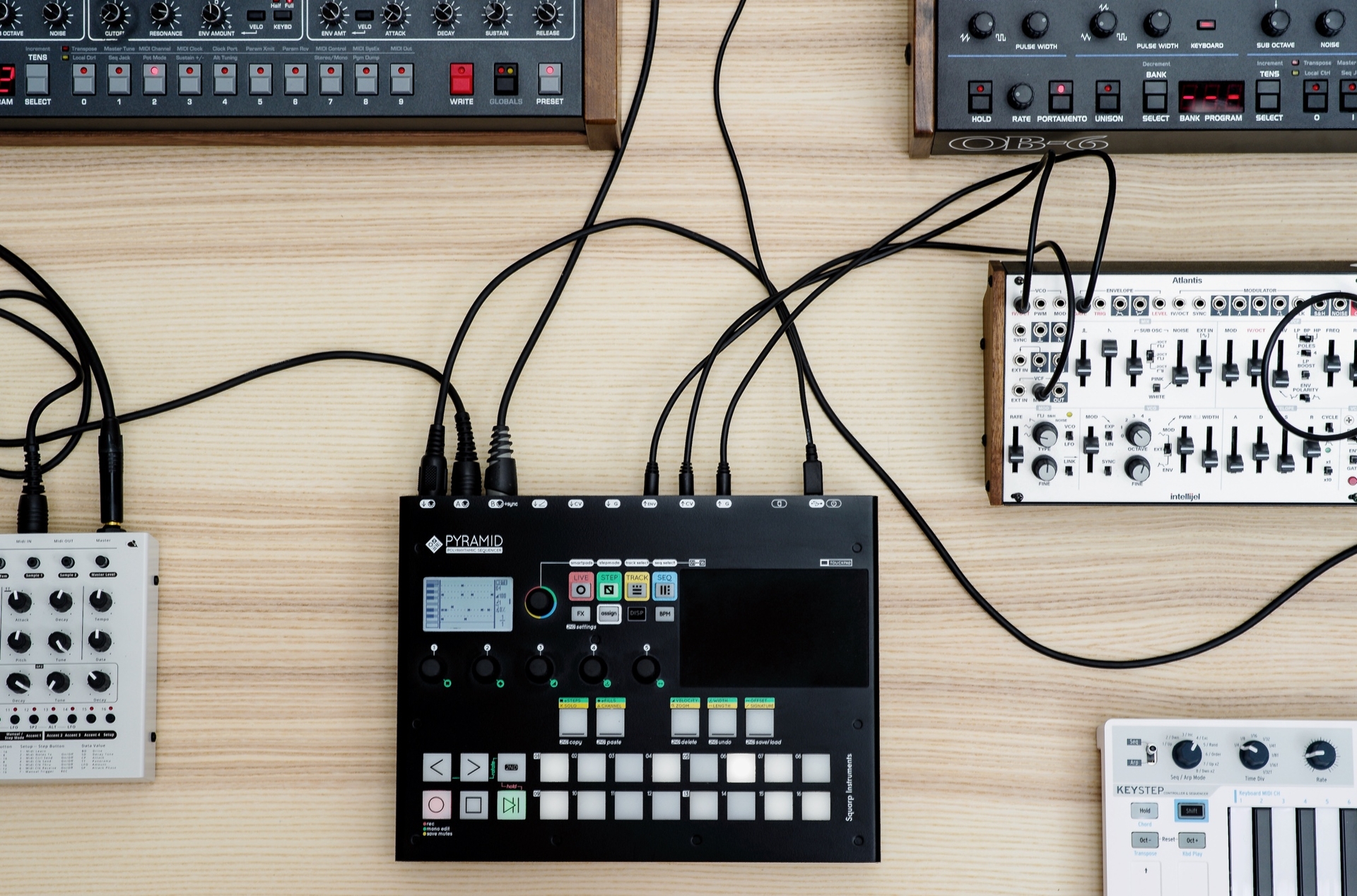 Pyramid does not produce sounds. Instead, we have focused our energies on creating an innovative and complete sequencing solution full of creative tools.