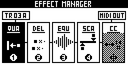 To exit the effect manager, press FX .