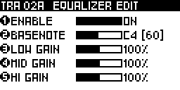Select the gain of the central notes (according to the BASENOTE parameter).