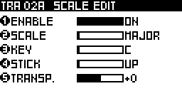 If a non-scaled note is exactly between two scaled notes, select if the effect have to choose the note below (DOWN) or above (UP). FILTER will not play notes outside the scale. ALGO1 or ALGO2 will randomly select the sticked note up/down.