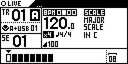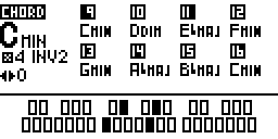 Press DISP to display the generated chords for the 8 smartpads and the currently recorded notes:
