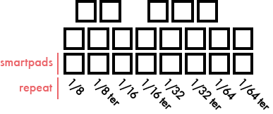 Press DISP to display the repeat speed of each of the 8 smartpads: