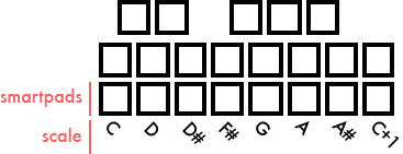 For instance with the Romanian Minor scale and the root note C, you can perform the following notes using the smartpads: