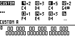 To create a custom chord or scale, play notes with the internal keyboard or an external keyboard: the played notes will be displayed on the screen: