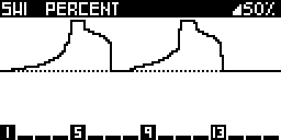 A 16-step automation of the PITCH BEND message. The dotted line represent the current CC value.