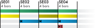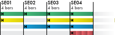 - TR03 is 6-bar long: it replays from the start in the middle of SE03.