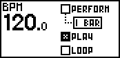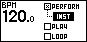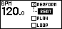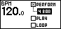 The sequence progression is displayed (in %). If the current sequence contains a 3 measure track and a 4 measure track, the sequence will be 12 measures long (number of measures after which all tracks restart at the same time again). This progression zone will be 100% filled after 12 measures.