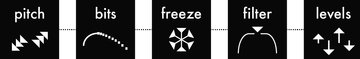 - 各ボイスに5つのエフェクト・ラックを装備:ビットクラッシャー、ピッチ (6極インターポレーター)、フィルター、フリーズ、ドライブ