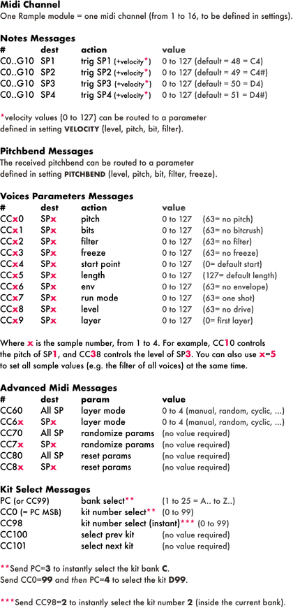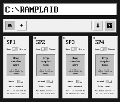 Tip To mimic a synthesizer, create your own folder kit with a synthesizer sample (e.g. a C note) for each of the 4 voices, so the sound will be the same, only the note pitch will change (and you can still add Rample's FX/parameters for each independent voices).