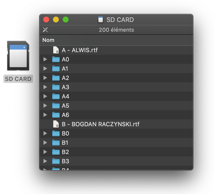 For example, a kit folder can be nammed A0, E10, R7, G69, Z99, ... Up to 2600 folders can be created!
