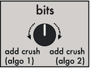 - select the effect/parameter to assign (pitch, bits, filter, freeze, start, length, env, run, levels, layers, T–F (trig freeze), v/oct).